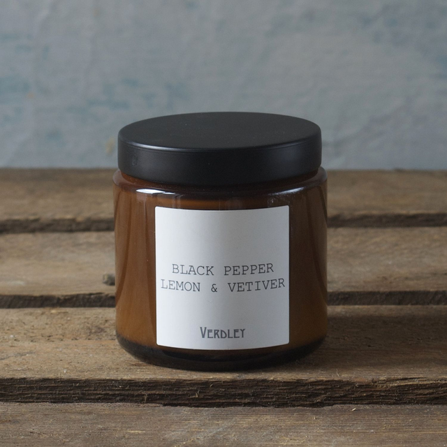 Vegan scented candles made in the UK from sustainable soya, rapeseed oil and fine quality essential and fragrance oils. Each candle is poured in a beautiful brown pharmacy glass jar and sealed with a black metal screw lid.